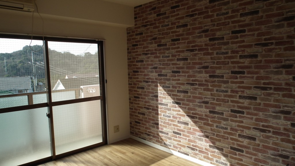 レンガのクロスのアクセントウォールです(*^_^*) お友達を呼びたくなるようなお部屋に仕上がっています!