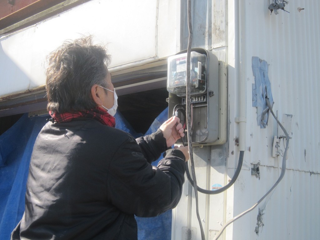 M様店舗工事は本日も電気屋さんによる屋外配電盤の接続作業2名で行ってます。 内部配線工事は本日中済む予定です。