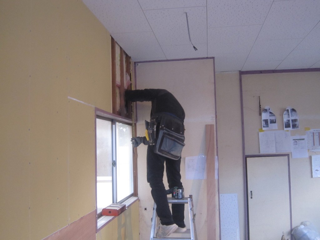 M様店舗工事は年末引き渡しであり、内部の造作工事を急ピッチで大工さんは作業してます。