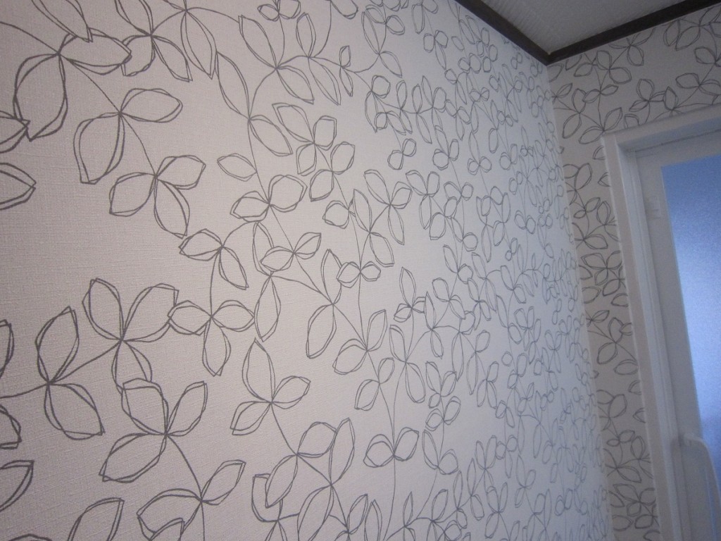クロス貼りを現在行ってますが、既に貼り終えた洗面所のクロスをアップしました。施主様がご覧 になり多いに満足されてます。