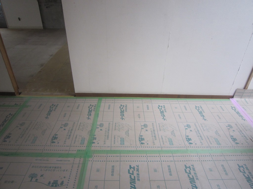 今回、2階室内改装工事が開始となり先週土曜日解体工事を行いましたが、先ず廊下、階段等に養生しました。