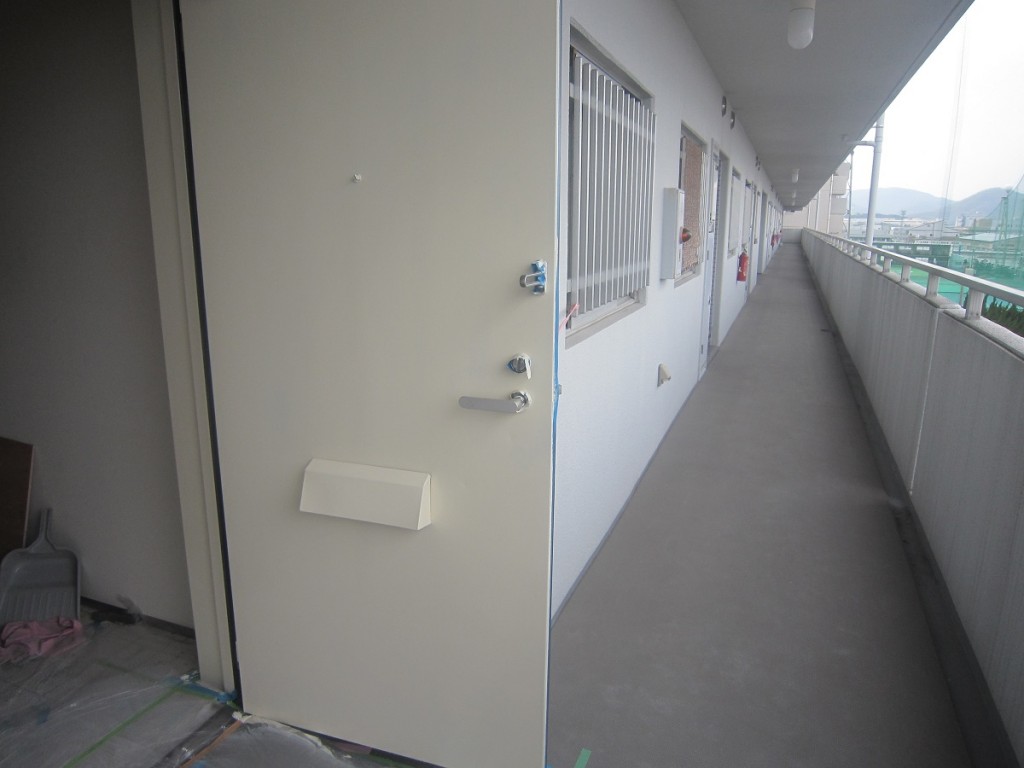 K様邸マンション工事は本日、塗装屋が入りましてサッシ内部額縁と玄関ドア内側の塗装を行ってます。