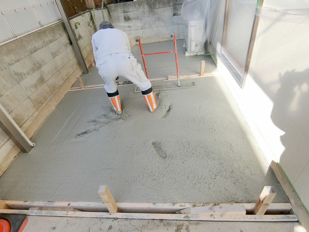 DAY3(土間コン打設) 土間コンクリート打設工事を行っています。 横幅の長い器具と小さなコテを使って、綺麗にならしていきます。 ひび割れを防ぐために設けた目地の部分は木枠で固定されています。 次回は、30日(火)に木枠 […]