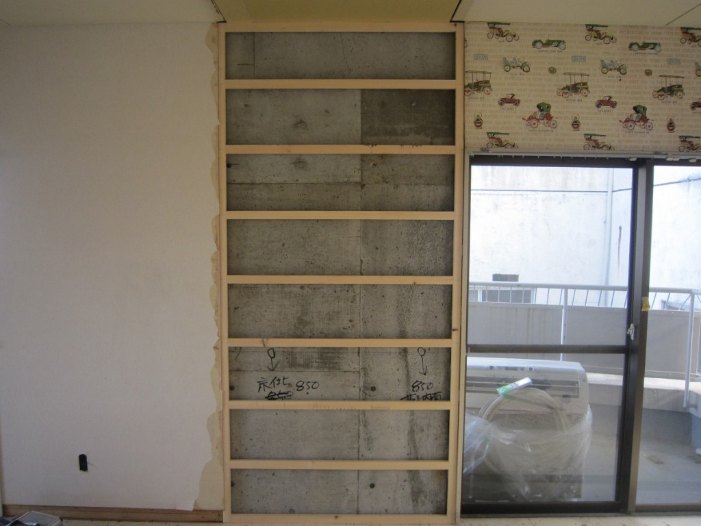 本日は大変寒いですが大工さんが頑張って作業してます。寝室、子供部屋、納戸の壁下地、入口建具下地枠等の作業です。