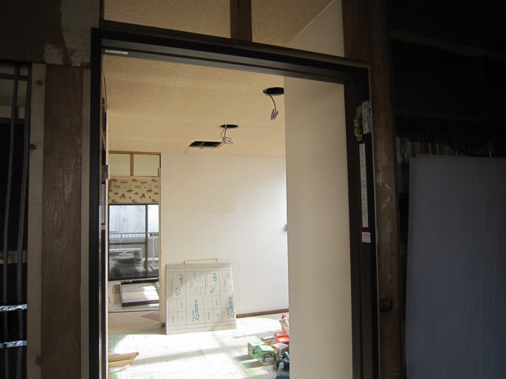 大工さんの内部造作工事は室内ドア・引戸の枠取り付け作業まで進みました。あとは室内の 一部ボード張り作業となります。
