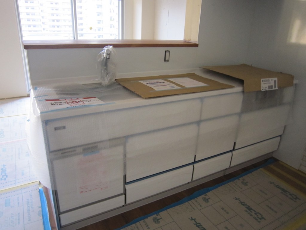本日朝からキッチン据付工事に入りましてキッチンパネル・本体設置の工事が夕方終了しました。