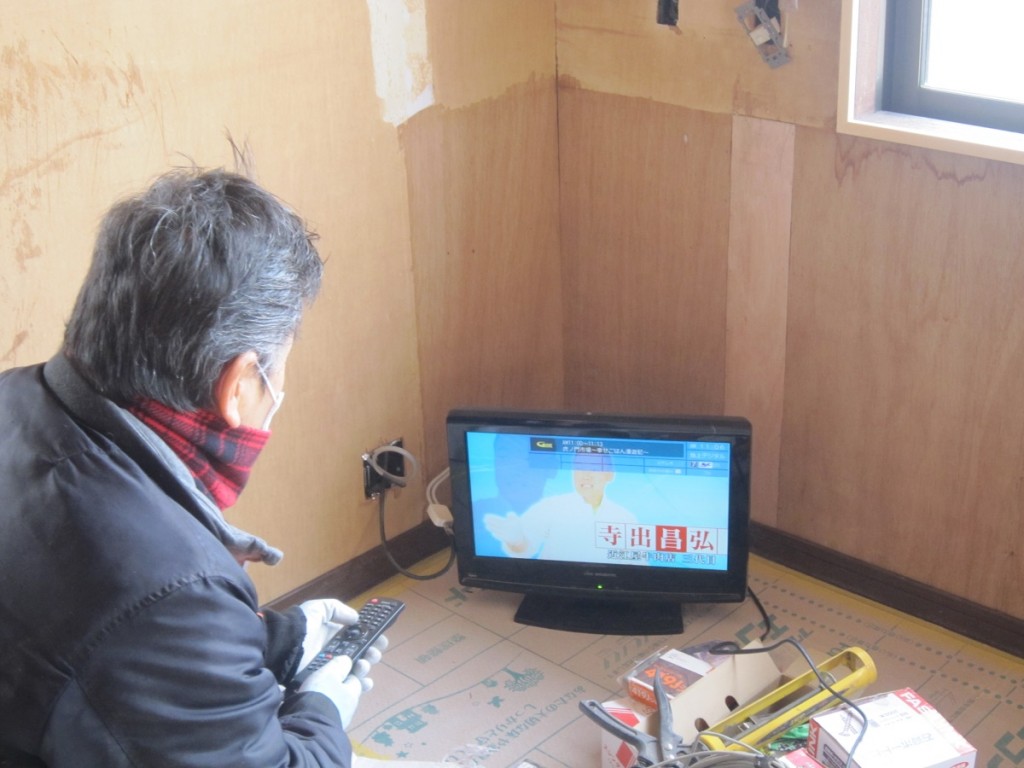 本日は電気配線工事を継続して行ってます。電気職人さんは自らTVを持ち込みして 画像が映るか試験してます。アンテナは問題はありません。