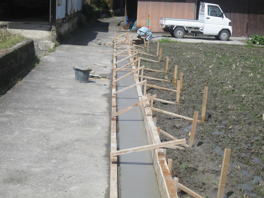 最近雨降りが続き外部作業に影響してますが、侵入路拡張のコンクリート打ちは終了しました。 2、3日おいて型枠解体となります。
