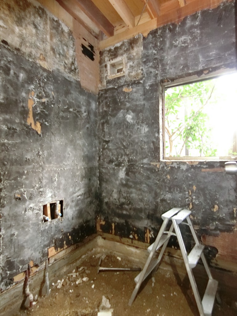 壁床のタイルをすべて解体をしました。 16日(月)~配管、土間コンクリート工事を行います。