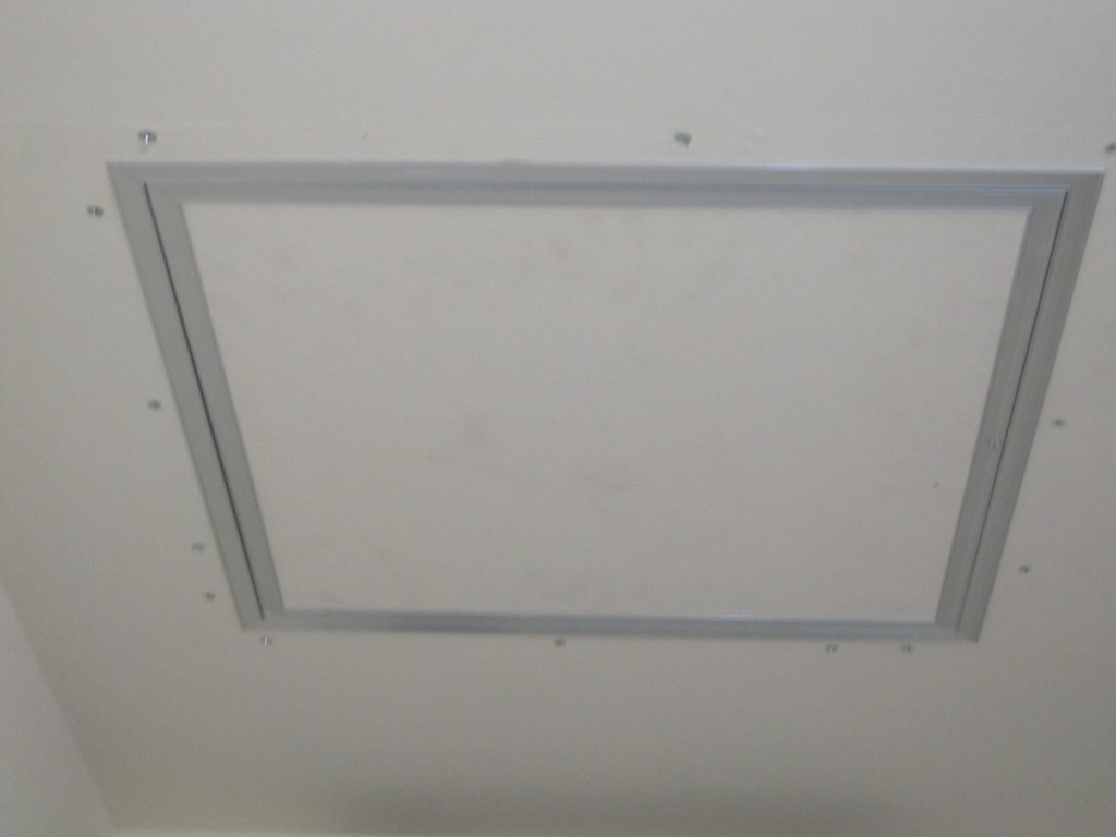 今回、浴室に換気扇を付けるため電気配線工事がいるため天井に点検口を設けました。明日朝から電気屋さんが入り浴室配線作業をします。