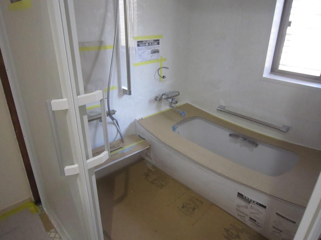 I様邸ユニットバス据付工事が昨日中に無事終了しました。今日は壁等シールを乾かしてます。後は配管接続と電気接続すれば完成となります。