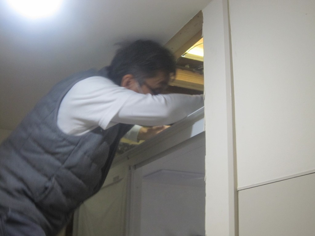 本日朝に現場訪問しましたら明日から施主様に風呂を使っていただきたく浴室天井の電気配線中です。また、浴室入口の仕舞工事のため大工さん2名で作業開始してます。
