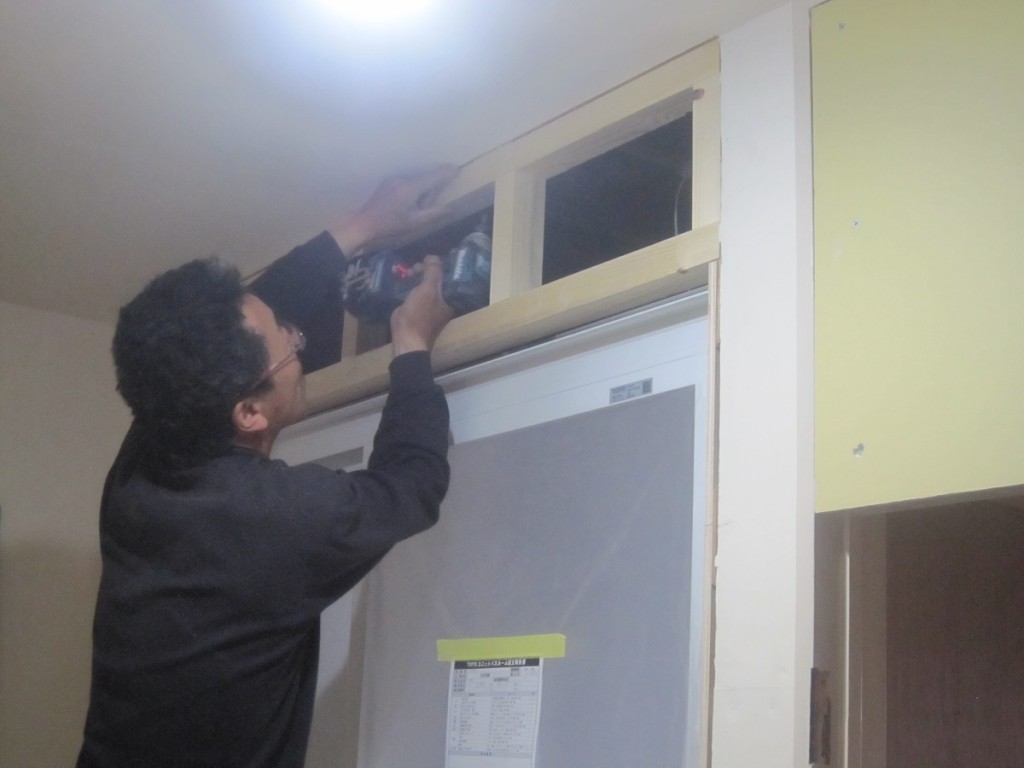 I様が明日夕方より風呂に入れる様に大工さんが急ピッチで作業してます。但し、浴室入口 ボード張りは済みますが仕上げのクロス貼りは来週月曜日となります。
