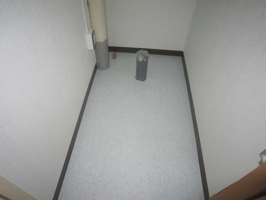 トイレのクロス、クッションフロア貼りが済みましてトイレ機器取付待ちです。