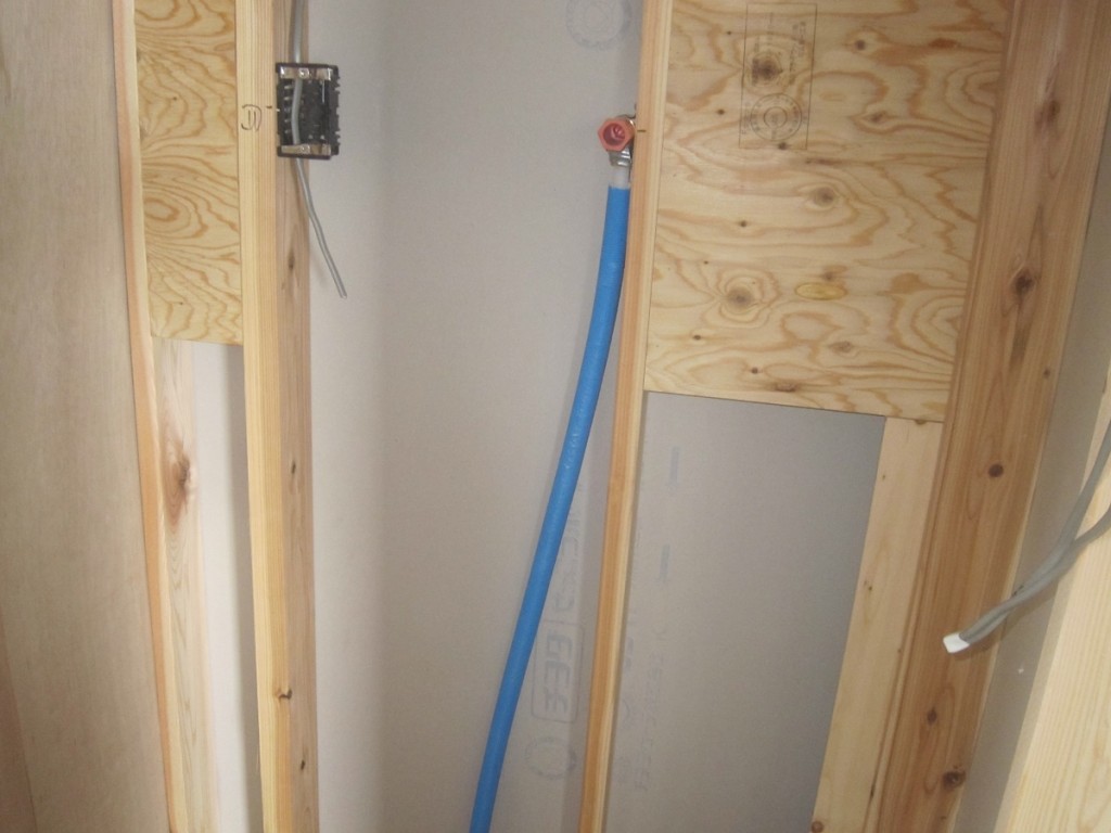 今回に新たに設置します洗濯機置き場の配管工事も済みました。