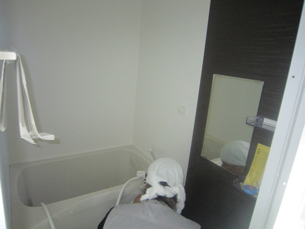 本日は賃貸部屋の1室を仕上げるべくユニットバス設置工事を行ってます。