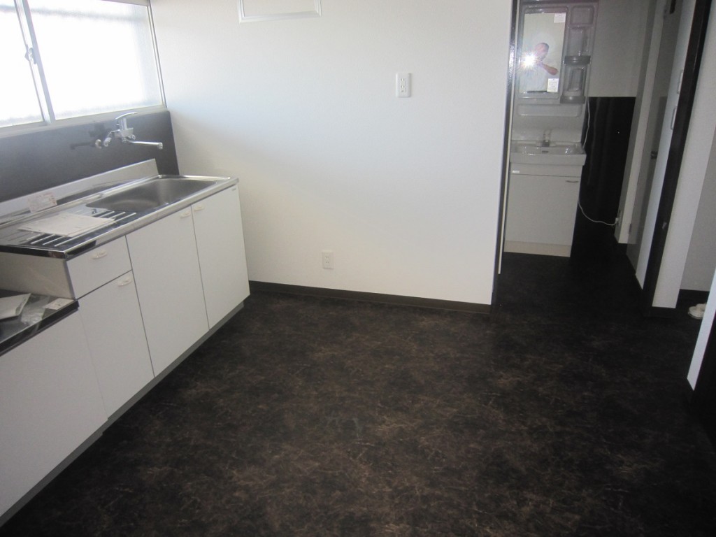 キッチン廻りの部屋も大変身しました。フロアはクッションフロアとしました。