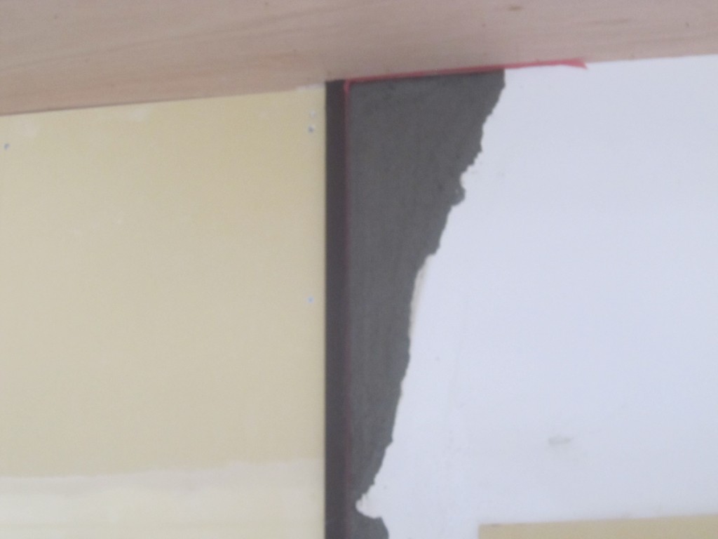 マンション外部工事は廊下防水工事を除きほぼ終了しました。本日は左官屋さんによる内部壁補修等 を行ってます。