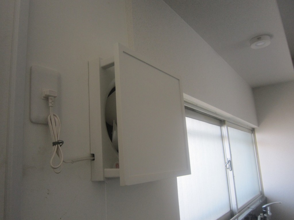 電気・設備屋さんは換気扇の内部フードを取り付けたり、クロス貼りが終わったスイッチ、コンセント カバー取り付けを行ってます。