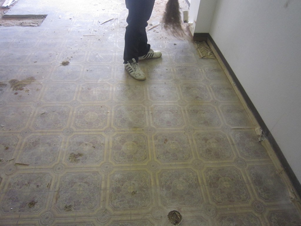 本日も残りの解体工事を行ってます。床を剝がしますと、現在床の下がクッションフロアなってました。 リフォームは実際作業しないと実体がわからないことが多々あります。