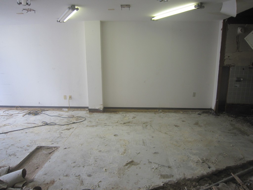 Y様店舗の解体工事が長引きまして床下に予想外のクッションフロアが見つかり今日 剝がして撤去しました。大変作業でした。