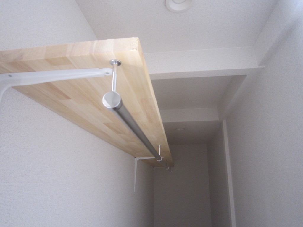 大工さんは室内ドア吊り込みと併行してクロゼット内部の棚施工とハンガー付けを全室 を行いました。
