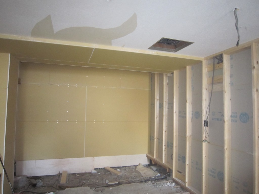 Y様は今回以前美容室を購入されまして事務所にされますが、スペースの半分は事務所 残り半分は駐車場となります。現在大工さんは駐車スペースの内部ボード張り作業中です。
