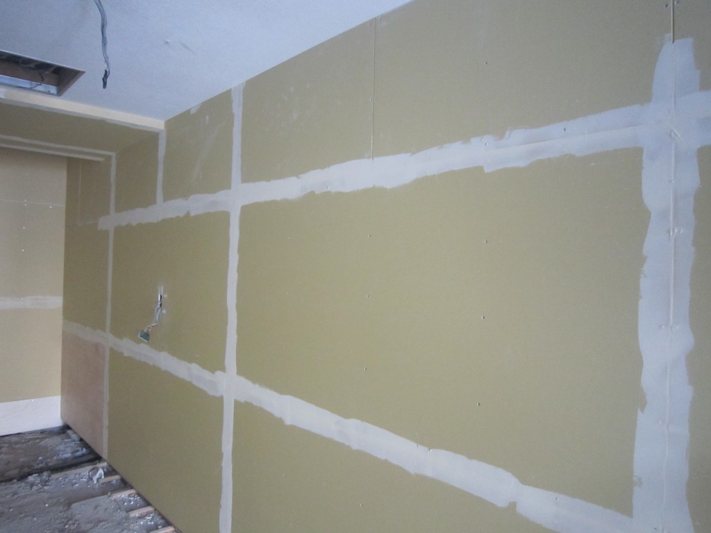 本日は大工さんの造作工事が一部を除き済みまして、クロス貼りの準備でパテ工事を行ってます。 パテ工事はクロス仕上げの為にも重要な工程です。