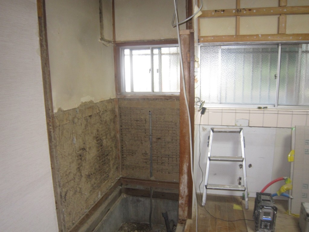 現状洗濯機置き場を壁解体して開放スペースとしてレンジ等の電気製品活用スペース となります。