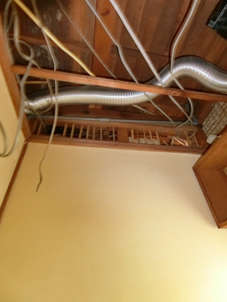 トイレの天井です。配線、換気ダクトが姿を現しました。
