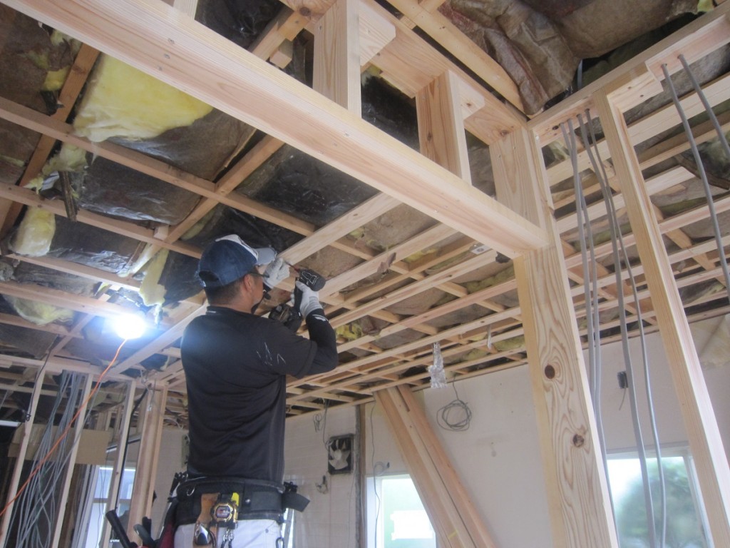 本日は大工さん1名増員して3名体制で内部造作作業にかかってます。