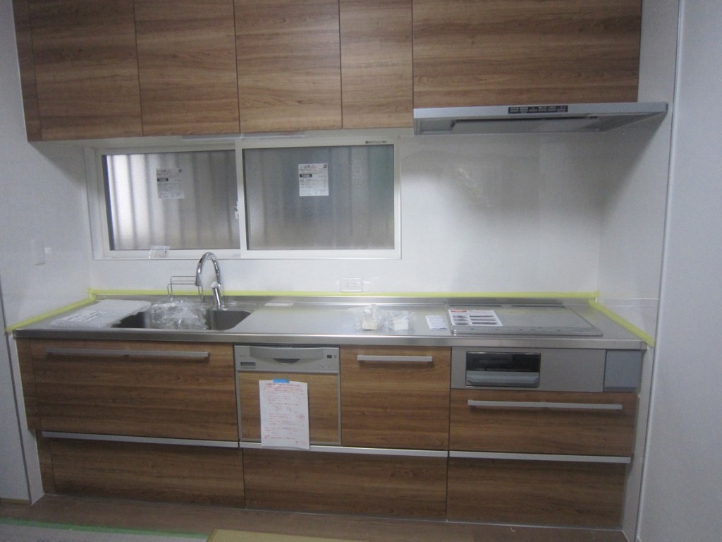 本日訪問しますと昨日キッチン施工職人さんは奮闘してました据付工事が終了しました。 あとは設備屋さんが給排水管接続が済めば使用できます。