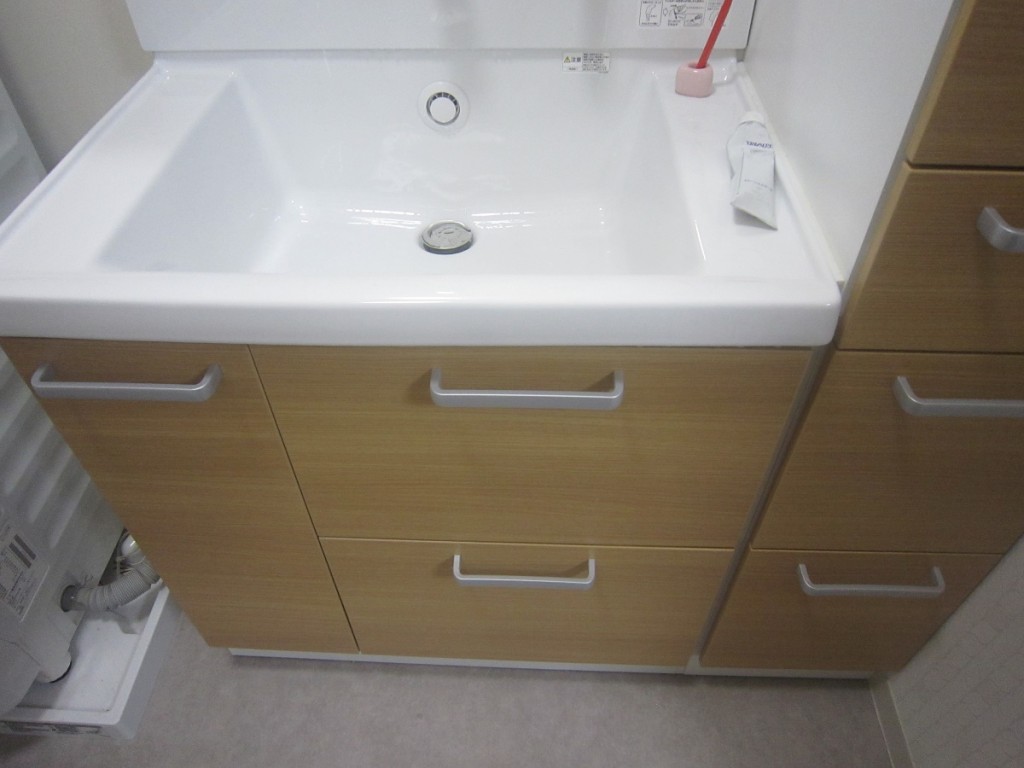 施主様はお住まいされながらのリフォーム工事で不便されたますが、洗面台が設置が済みまして 使っていただけます。引き渡しが終わってなく美装がされてません足元注意ください。