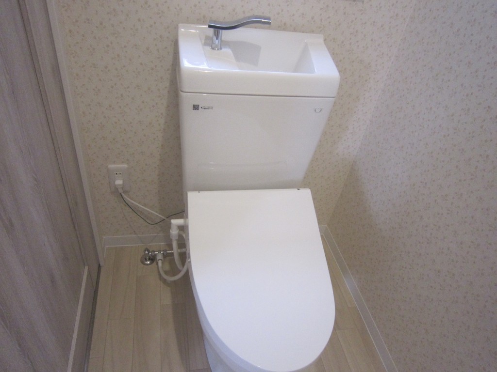本日も設備屋さんがトイレ機器の給排水管接続工事中です。