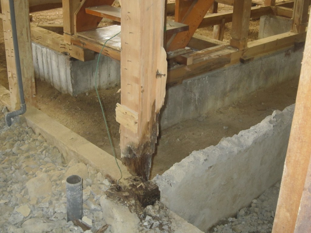 建物がスケルトン状況になり水廻り等の柱が腐食が激しい箇所もあり取替も必要となりました。