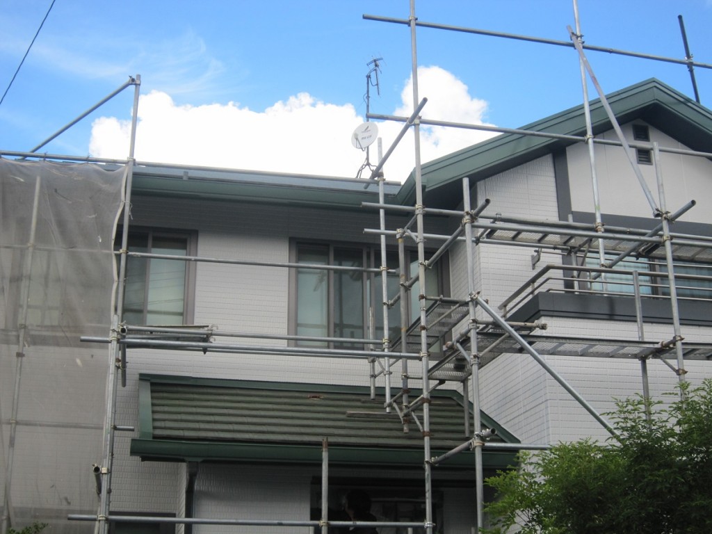 本日、職人さん2名でサッシ・手摺等の養生を外したりしてます。、また、施主さんに最終確認していただきます。足場撤去は9日予定してます。