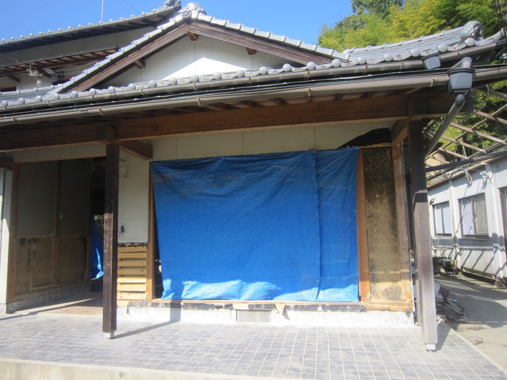本日は職人さんは入ってませんがサッシ等撤去してスケルトン状況にあるため青のビニールシート で覆いました。