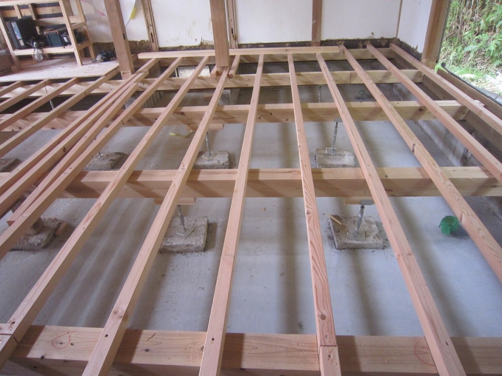 本日も大工さんは1階床の下地大引きと根太引き作業中です。
