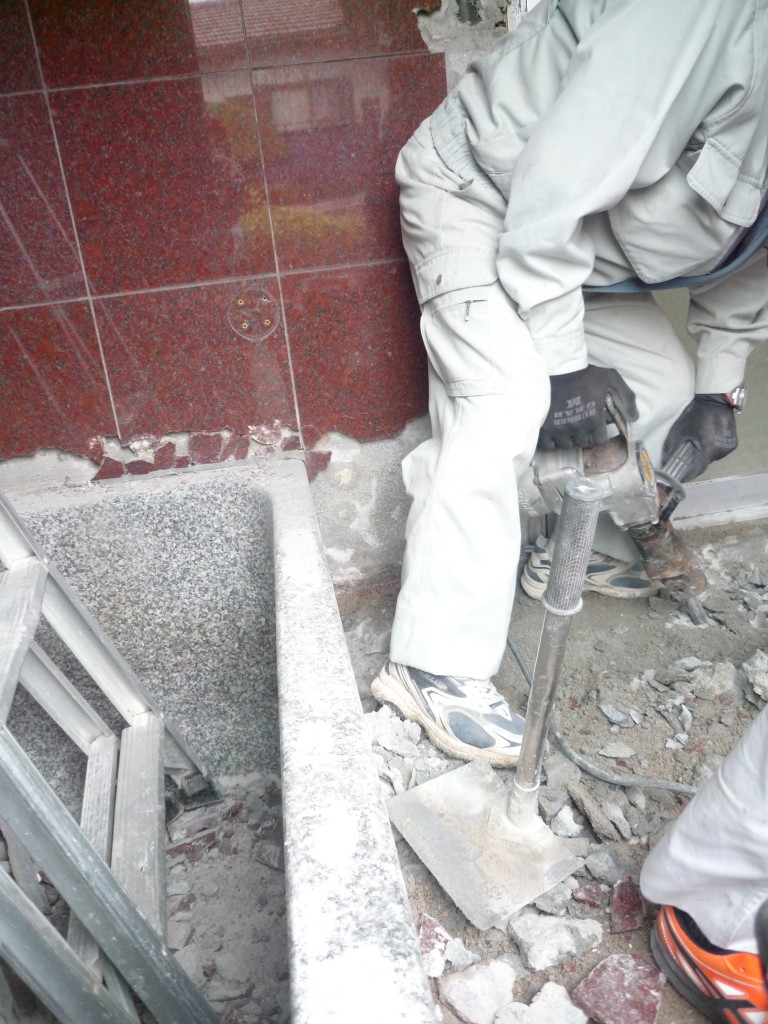 2年前和室から洋室にリフォーム工事させていただいたT様より今度は浴室リフォーム工事のご依頼をいただきました。T様邸の浴室は石でできており斫り作業から開始です。