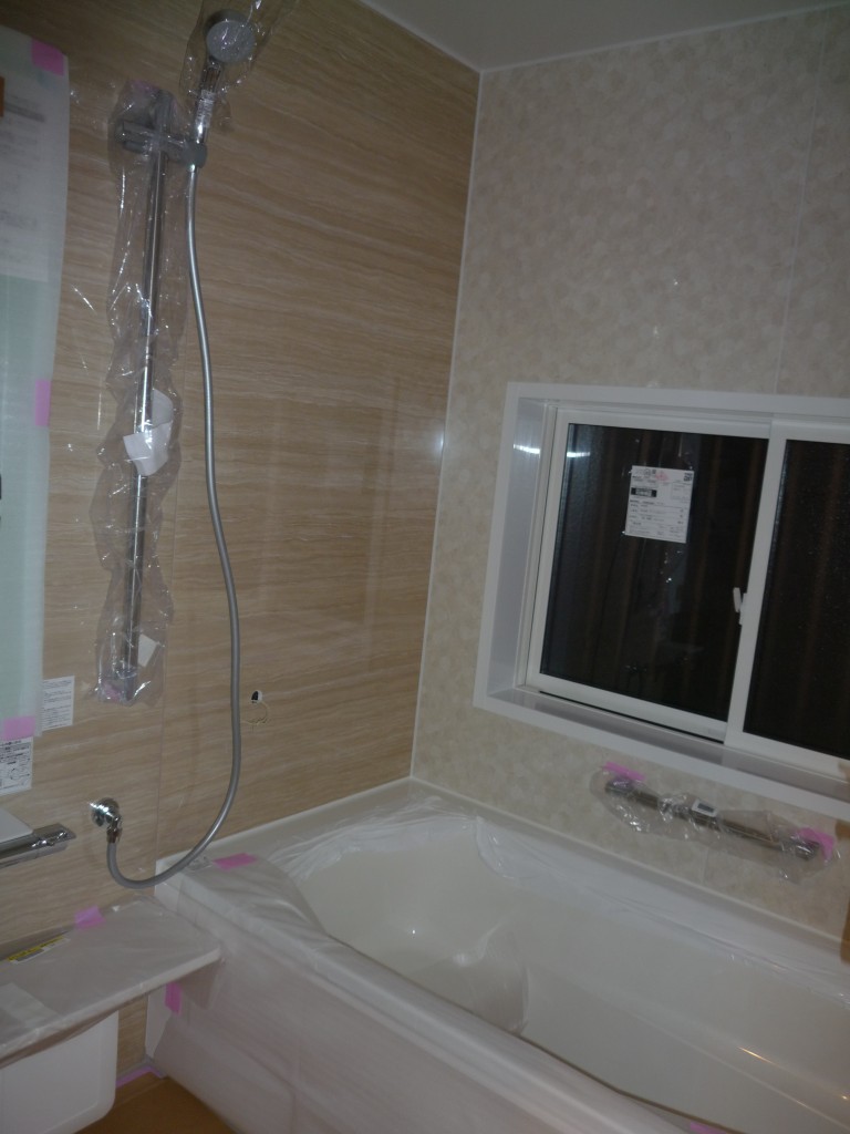 ご家族で選んだシステムバスが設置されました。 優しい色目で明るいお風呂になりました。