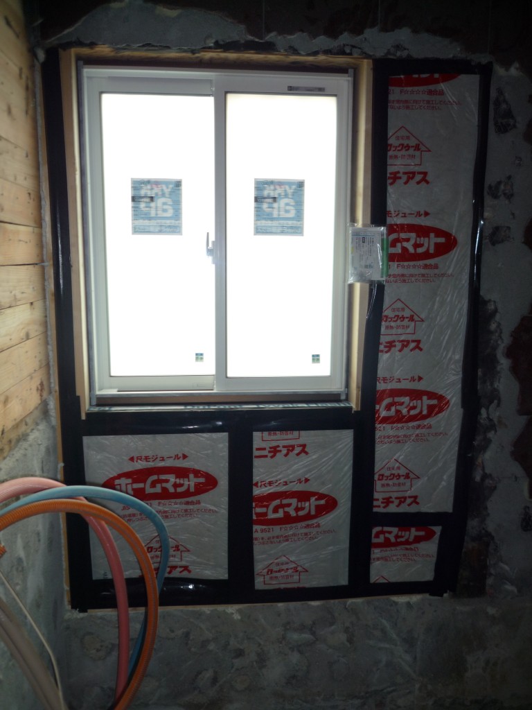 新しく窓が取り付けられました。浴室ということもありプライバシーに配慮した乳白色のガラスを採用いたしました。壁面にはしっかりと断熱材を入れています。
