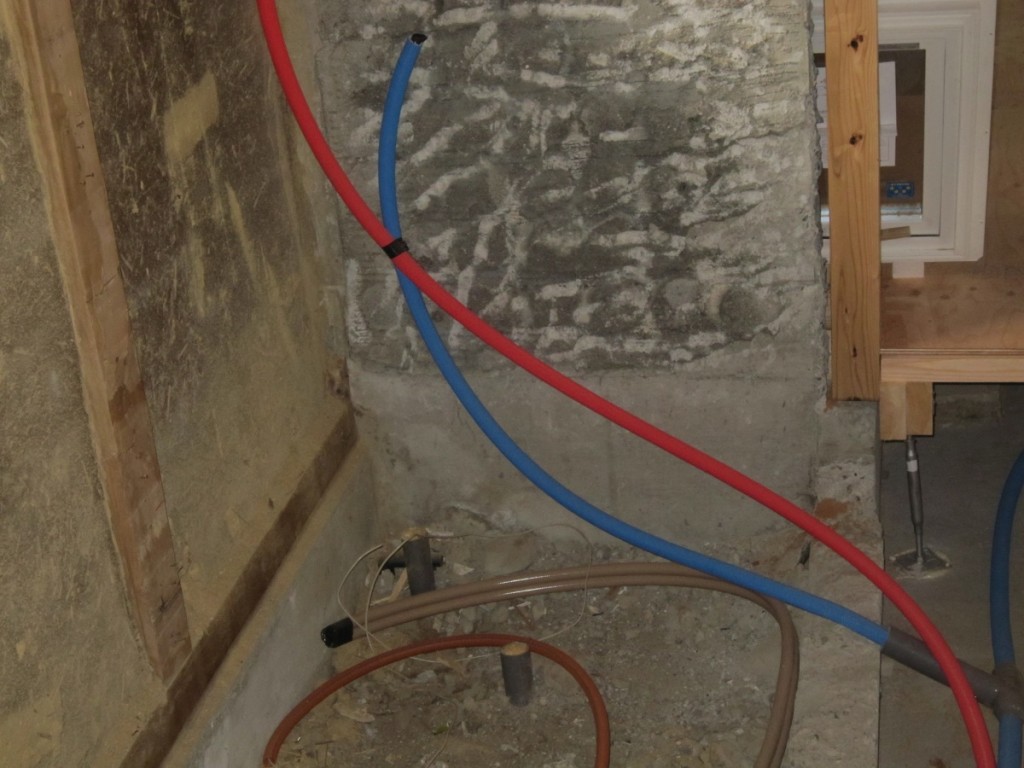 設備屋さんもキッチン、浴室等の水廻りの給排水管設置工事も済みました。