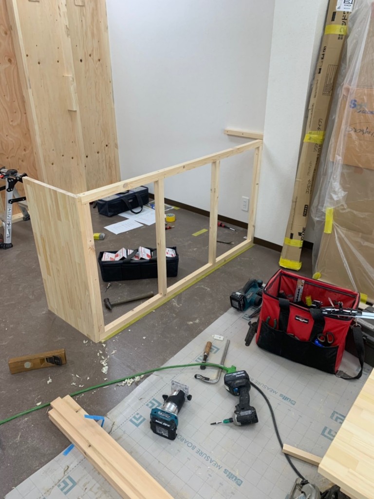 こちらはカウンターを作っています。カウンター下はオーナー様が自由に使えるようあえてフリーにしています。