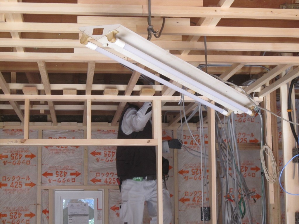 内部造作工事は1名増員となり断熱材作業は2階天井除きほぼ終了してこれからはフロア張り作業や内部窓枠含め 内部壁下地作業となります。