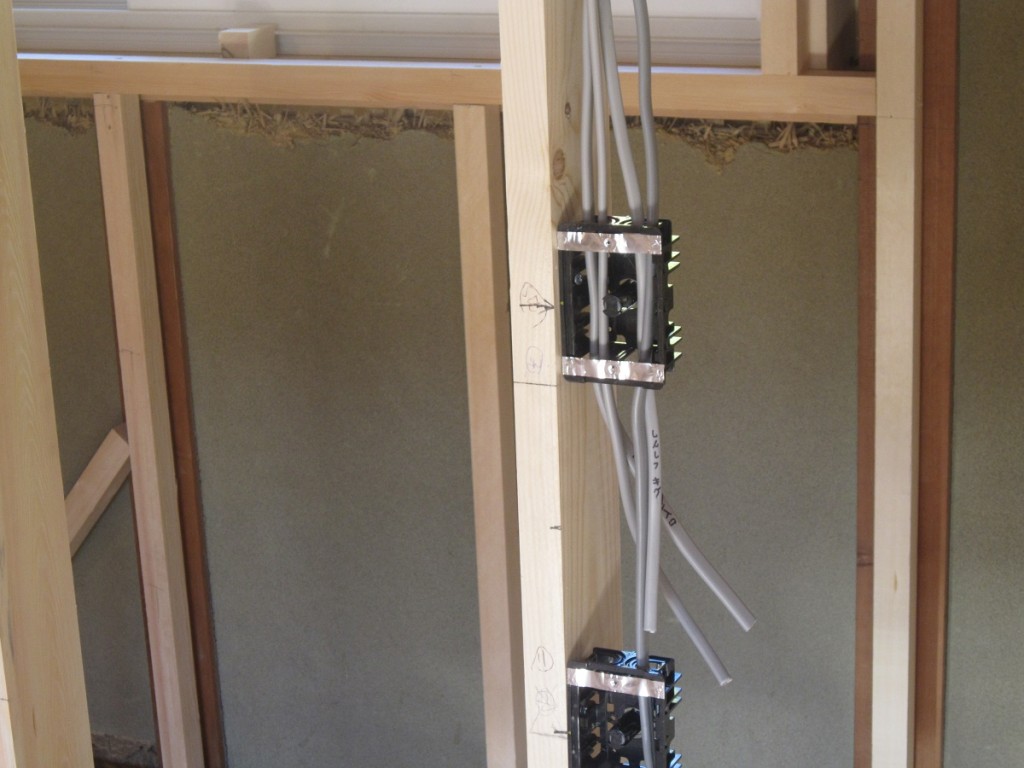 電気設備屋さんは大工さんの天井や内壁下地作業に備えましてコンセントやスイッチのボックス設置を行ってます。天井の配線等一部残し済みましたが、大工さん増員により配線工事をスピードアップで終わらせる予定です。