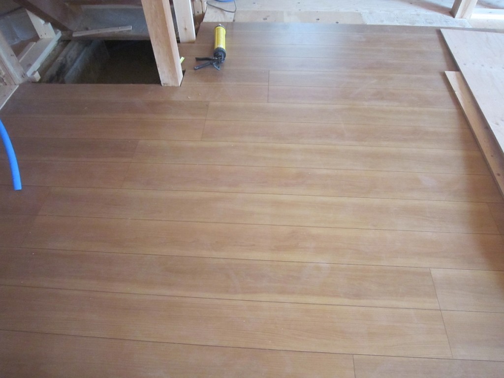 昨日からリビングダイニングの床張り作業してましたが、ほぼ終了しました。 あとは、傷付きを防ぐために養生シートを敷きます。