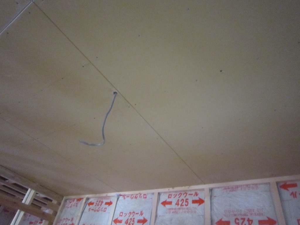 大工さんの内部造作工事は2名で作業中で1階天井の不燃ボード張り作業に掛かりました。