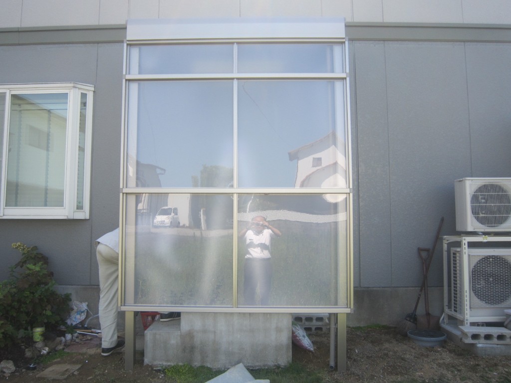 昨日、突然大雨でストックヤード設置工事が今日に持ち越しとなりましたが、無事終了しました。勝手口であり目隠し目的もありストックヤード設置しました。