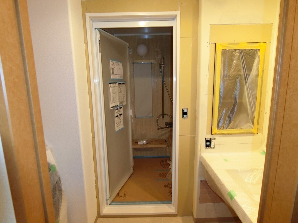 本日は待ってましたシスバスの据え付け工事となり朝から搬入され夕方にはほぼ工事終了しました。 職人さは昼食抜きで作業していただきありがとうございました。