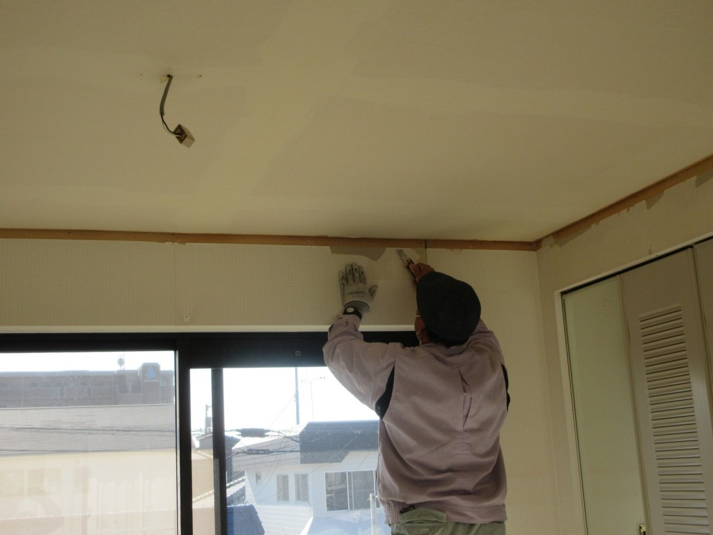 本日、大工さんはほかの現場の時間が空きまして2階の既存クロス剝がしを行ってます。本格的な内部造作 工事は年明けになります。